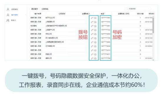 融营通信通过打造赋能API接口,通过加密客户的联系方式来保护企业客户数据隐私,对数据本身增强了保护,数据传输、存储及处理的各个阶段对数据进行加密,对信息进行处理,实现信息隐蔽,保护用户数据安全。避免员工离职后给企业带来不可估量的损失。