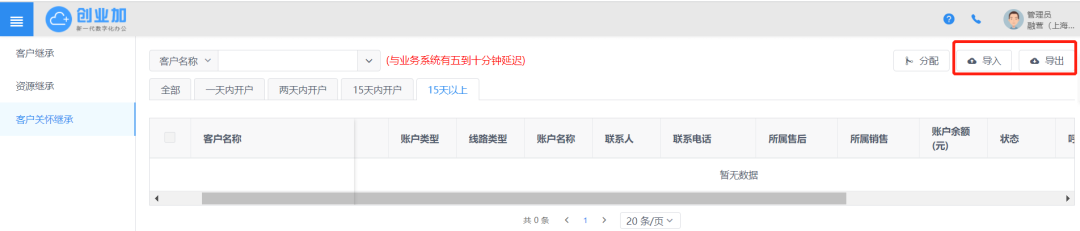 【客户关怀继承】增加【导入】【导出】功能,支持批量分配