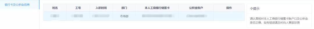 【人事档案管理】入口目前已开放个人查看权限,新增银行卡卡号公积金账户信息,方便使用者随时核查,发现问题也可及时向相关部门沟通反应。