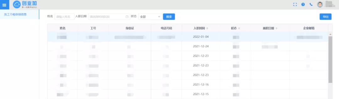 年末、年初之际,是所有在职员工完成个税申报的重要时间段,考虑到该项工作具有时效性,更新后的创业加BPM已在HR模块新增【员工个税申报信息】, 有效帮助相关部门及时获取员工资料从而完成申报工作。
